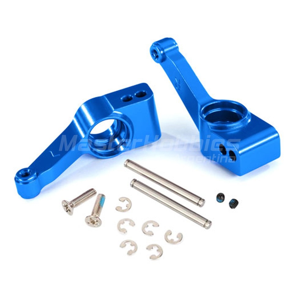 Portaejes, mangueta (aluminio 6061-T6 anodizado azul) (trasero) (izquierdo y derecho)/pasadores de bisagra de 3x32 mm (2)/clips electrónicos (6)/ tornilleríaLos portaejes de aluminio Traxxas añaden la resistencia de la aleación 6061-T6 con un hermoso acabado anodizado sin comprometer su geometría de suspensión de pista. El kit de instalación completo incluye pasadores de bisagra de acero endurecido, clips electrónicos y herrajes.