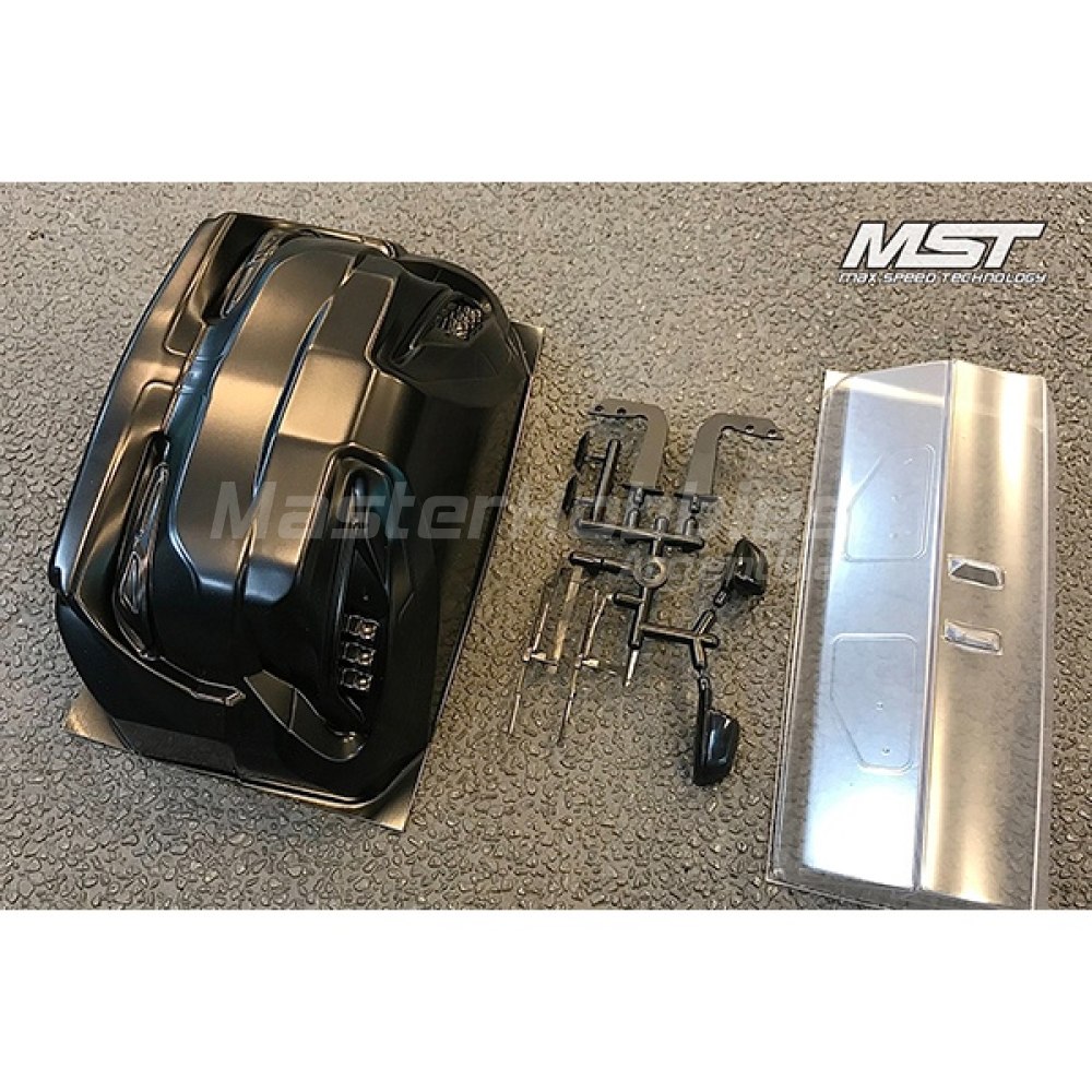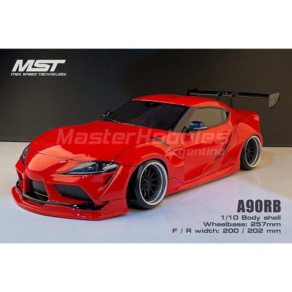 Cuerpo de deriva MST A90RB. Esta carrocería transparente es una gran opción para una carrocería de derrape deportiva que está diseñada para adaptarse a chasis de 190 mm de ancho y 257 mm de distancia entre ejes. El cuerpo está hecho de policarbonato duradero e incluye cubos de luz transparentes, así como piezas de detalles moldeadas. El paquete incluye un juego de carrocería, una hoja de calcomanías y una hoja de máscara de ventana.
