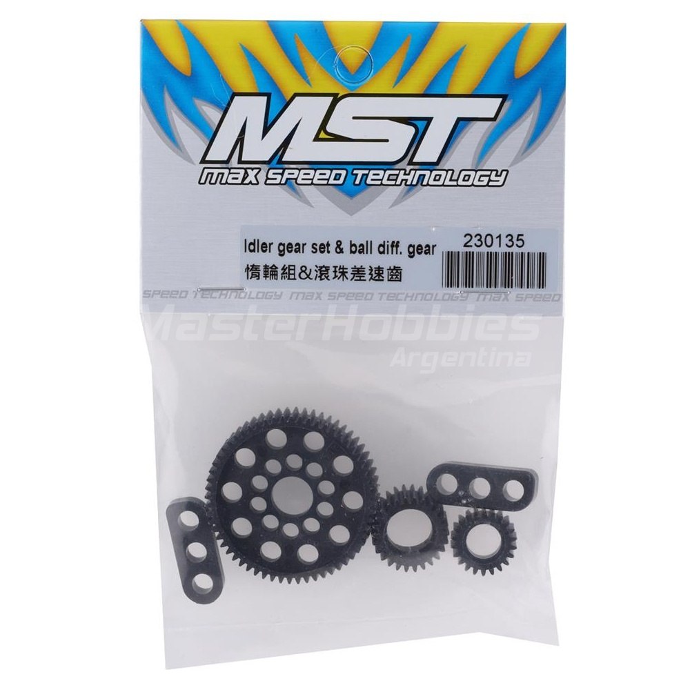 MST RMX 2.0/2.5 Juego de engranajes intermedios y diferenciales de bola. Este juego de engranajes de repuesto está diseñado para MST RMX 2.0, RMX 2.5 S o RMX 2.5 RS. El paquete incluye un juego de engranajes y dos espaciadores.