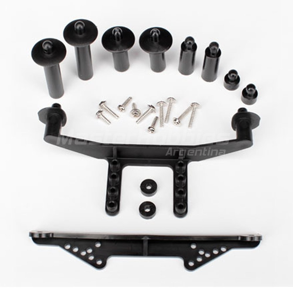 Montaje de carrocería, delantero y trasero (negro)/postes de carrocería, 52 mm (2), 38 mm (2), 25 mm (2), 6,5 mm (2)/extensiones de postes de carrocería (4)/hardwarePostes y soportes de carrocería delanteros y traseros. Incluye los siguientes postes: 52 mm (2), 38 mm (2), 25 mm (2), 6,5 mm (2), extensiones de postes del cuerpo (2) y herrajes.