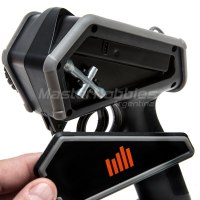 Los parachoques de poliuretano termoplástico moldeado (TPU) rodean el chasis del radio para protegerlo contra caídas, golpes e incluso algunos golpes aquí y allá. No hay una antena externa de la que engancharse o preocuparse: una cresta de bajo perfil en el chasis protege internamente la robusta salida de señal de alta velocidad. Un protector de chasis frontal versátil mejora aún más la durabilidad y proporciona opciones de montaje para accesorios integrados por el usuario, como una cámara, una fuente de luz o cualquier otra cosa. El par de puntos de montaje del cordón les da a los conductores la capacidad de mantener el transmisor cerca y tener una mano libre cuando no están conduciendo. Un compartimento para accesorios de fácil acceso permite llevar herramientas pequeñas, como una llave en T que encaja inteligentemente en el soporte interno provisto. Aumentamos la resistencia al agua del transmisor * para brindar tranquilidad a los conductores en caso de que un poco de lluvia caiga en su camino. Por último, pero no menos importante, se encuentra un volante agresivo de estilo todoterreno que amplía aún más su robustez y lo equipa con una innovadora palanca para el pulgar para que el control de su vehículo con una sola mano sea más seguro y preciso.