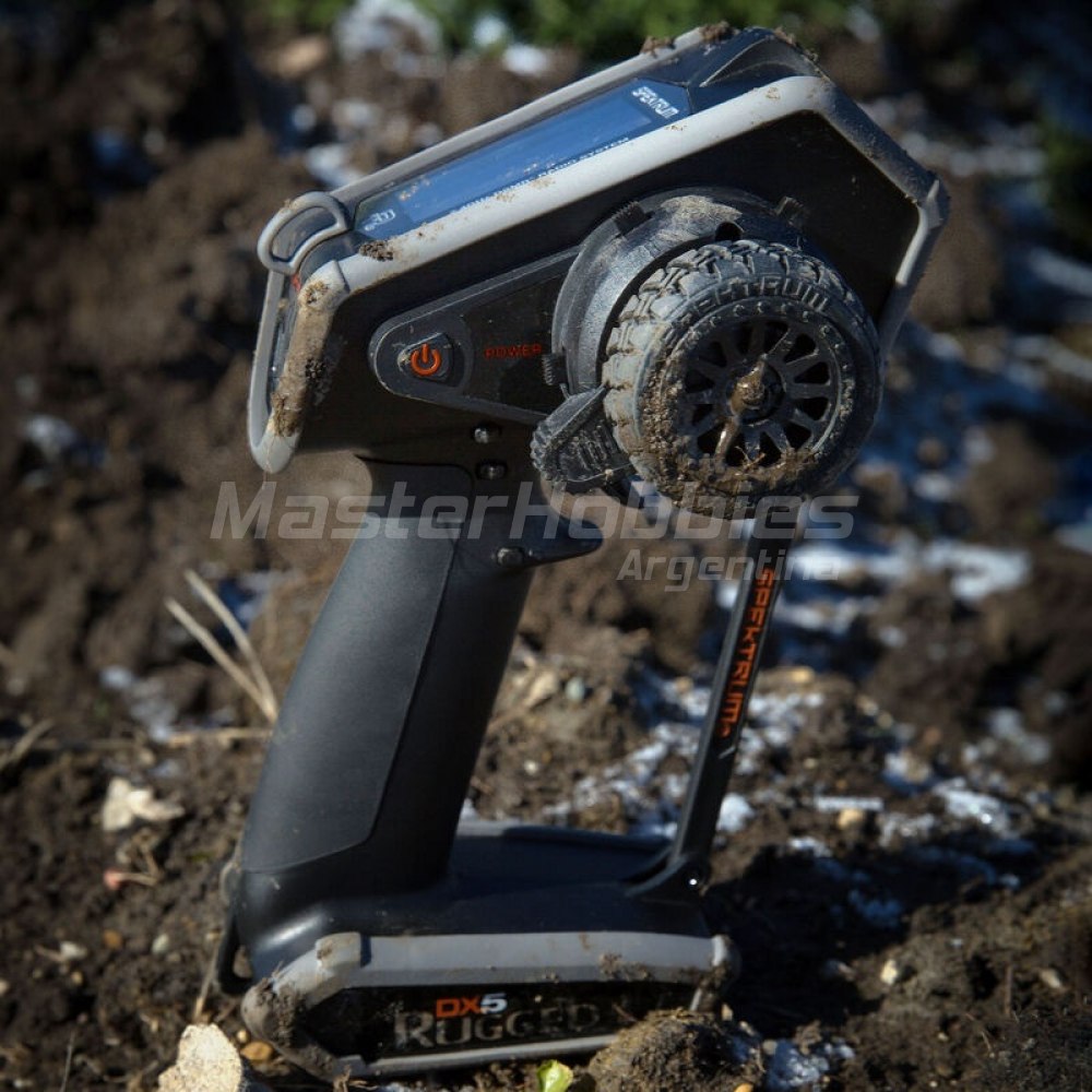 Sus vehículos son extremadamente duraderos, ¿por qué no su transmisor? El transmisor de superficie de 5 canales Spektrum ™ DX5 Rugged ™ redefine el control de radio con un nivel de durabilidad para adaptarse a las duras condiciones que enfrentan constantemente los todoterreno, los atacantes y los navegantes. Comenzamos con un chasis basado en el excelente diseño ergonómico de Spektrum que se encuentra en el popular DX5C y el favorito de la competencia DX5 Pro. A partir de ahí, integramos ideas de funciones de herramientas eléctricas inalámbricas para el duro castigo que soportan esos productos. El resultado es un sistema RC líder en su clase con una durabilidad inigualable, además de otras características innovadoras que se unen con un nivel de precisión, versatilidad y conveniencia sin el que no querrás jugar.