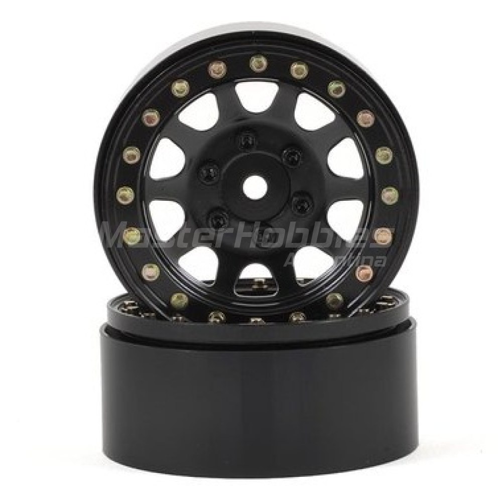 Las ruedas Beadlock de acero SSD D Hole de 1,9" cuentan con un acabado enchapado, cubos de aluminio mecanizado de 12 mm y anillos beadlock, combinados con un diseño beadlock interno y pernos de cabeza hexagonal con escala SSD para completar el paquete.