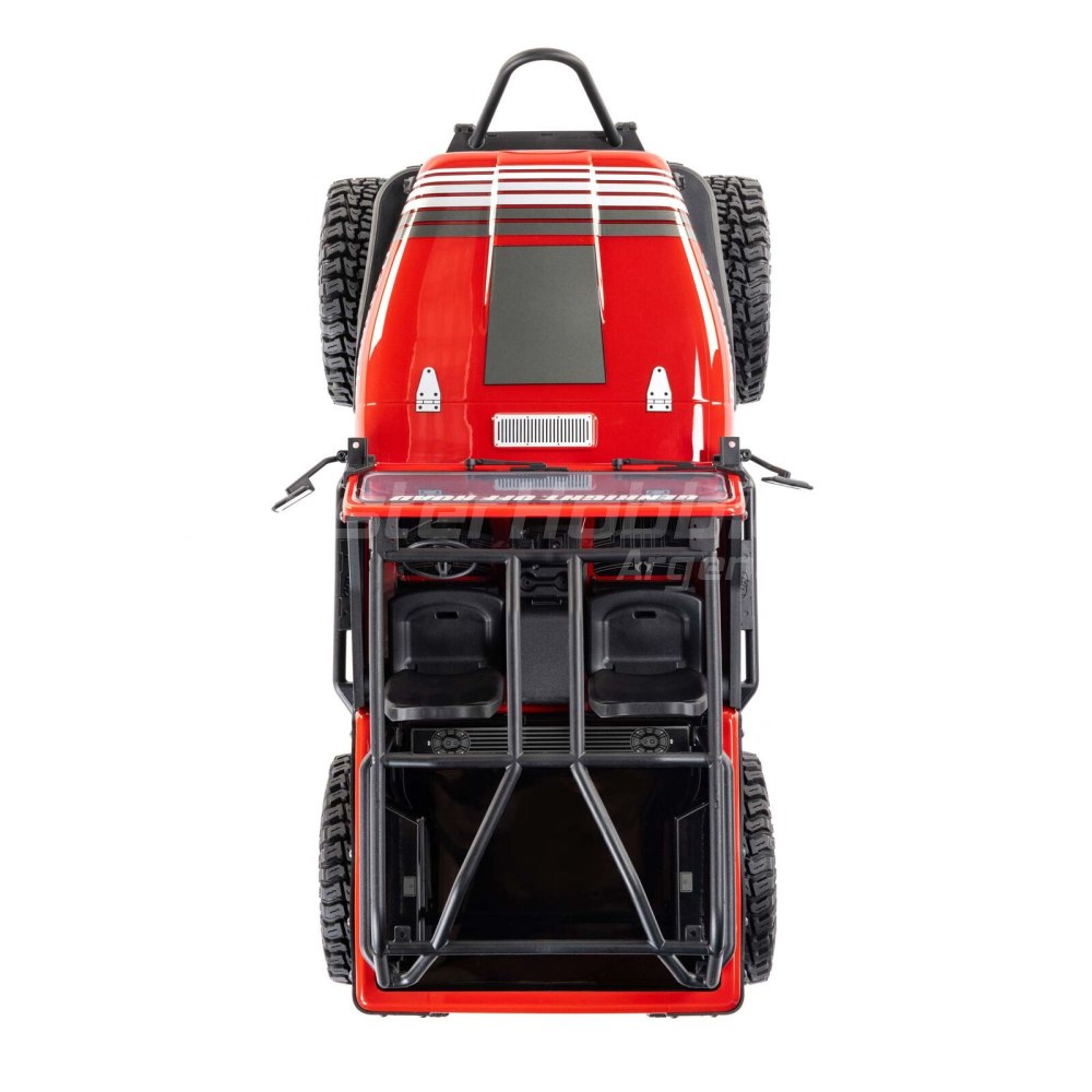Made of durable polycarbonate, the officially licensed and factory-finished CJ-7 scale body comes richly detailed with officially licensed Gen-Right bumpers and body armor, a full injection-molded roll cage, plus a full interior including an opening center console. The doors can be opened or even removed.