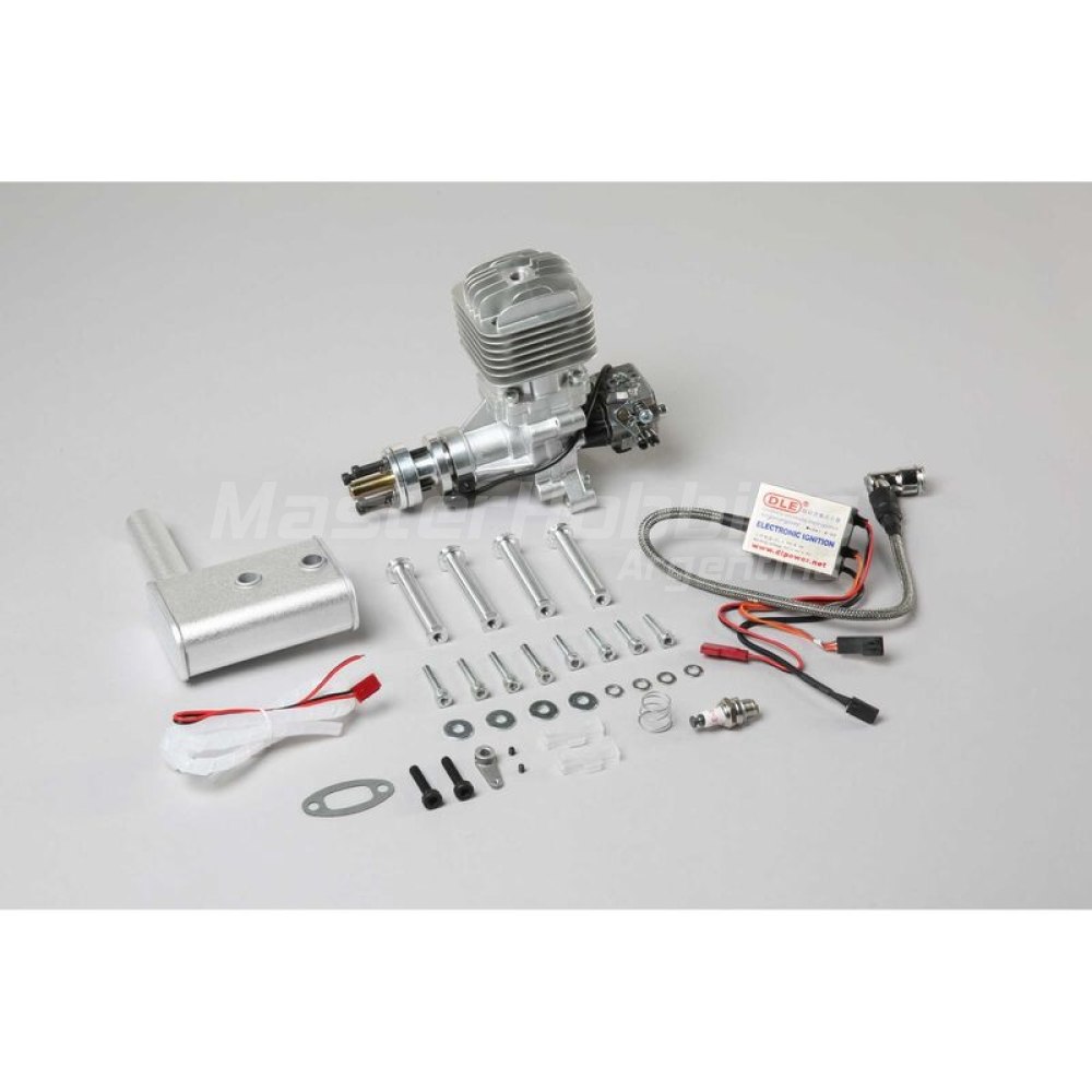 El motor de gasolina DLE-30cc ofrece a los pilotos un rendimiento de vuelo superior a un precio asequible. Las características incluyen una unidad de encendido electrónico completamente automática, un silenciador, un carburador montado en la parte trasera y un cárter de aleación de aluminio.