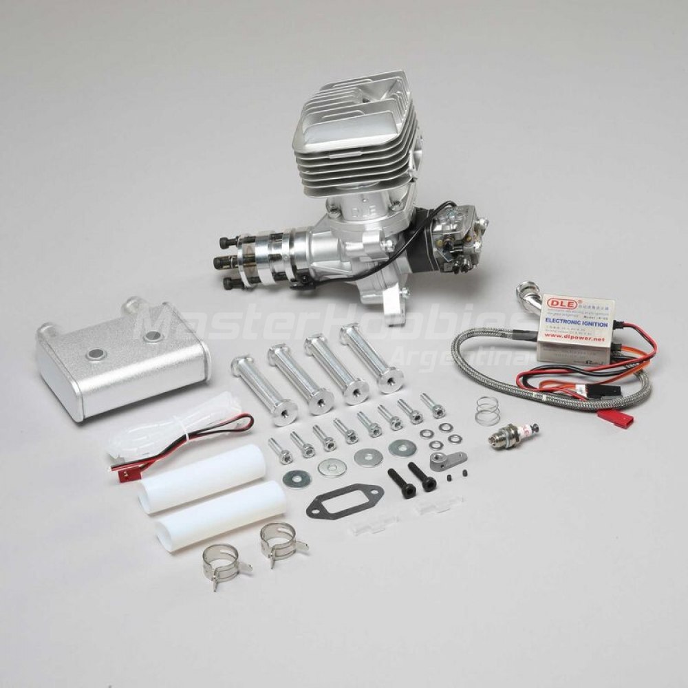DLE lleva el rendimiento de 50 cc a un nuevo nivel con el escape trasero DLE-55RA. Todo acerca de este motor grita rendimiento, desde el faldón del pistón, diseñado para ser liviano para una respuesta rápida del acelerador y toneladas de potencia, hasta el escape trasero que le permite instalar fácilmente un tubo sintonizado en su avión. El 55RA proporciona 100 rpm más que el DLE55 estándar. Incluye separadores de motores, encendido electrónico, bujía y silenciador estilo Pitts.