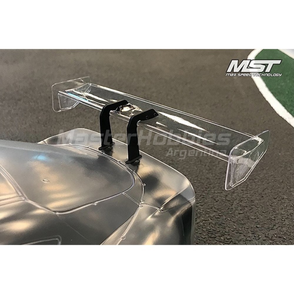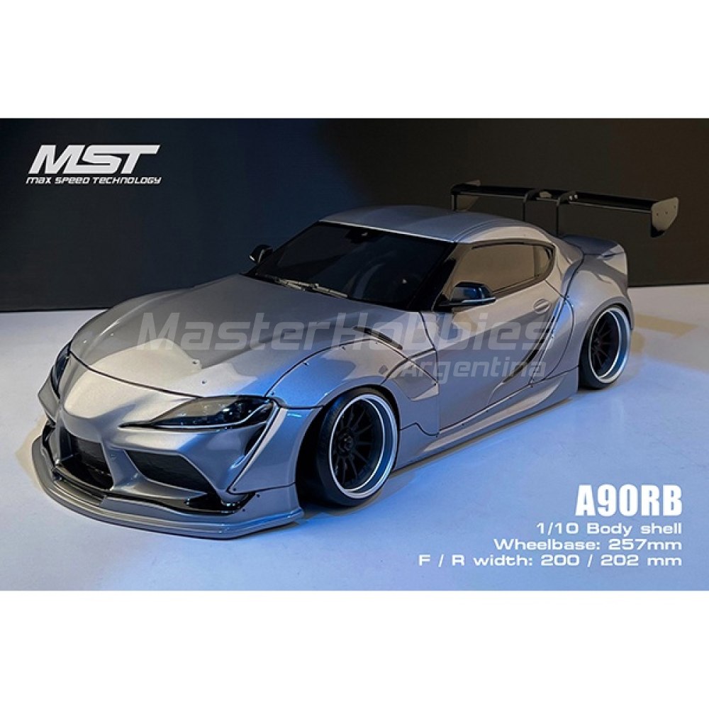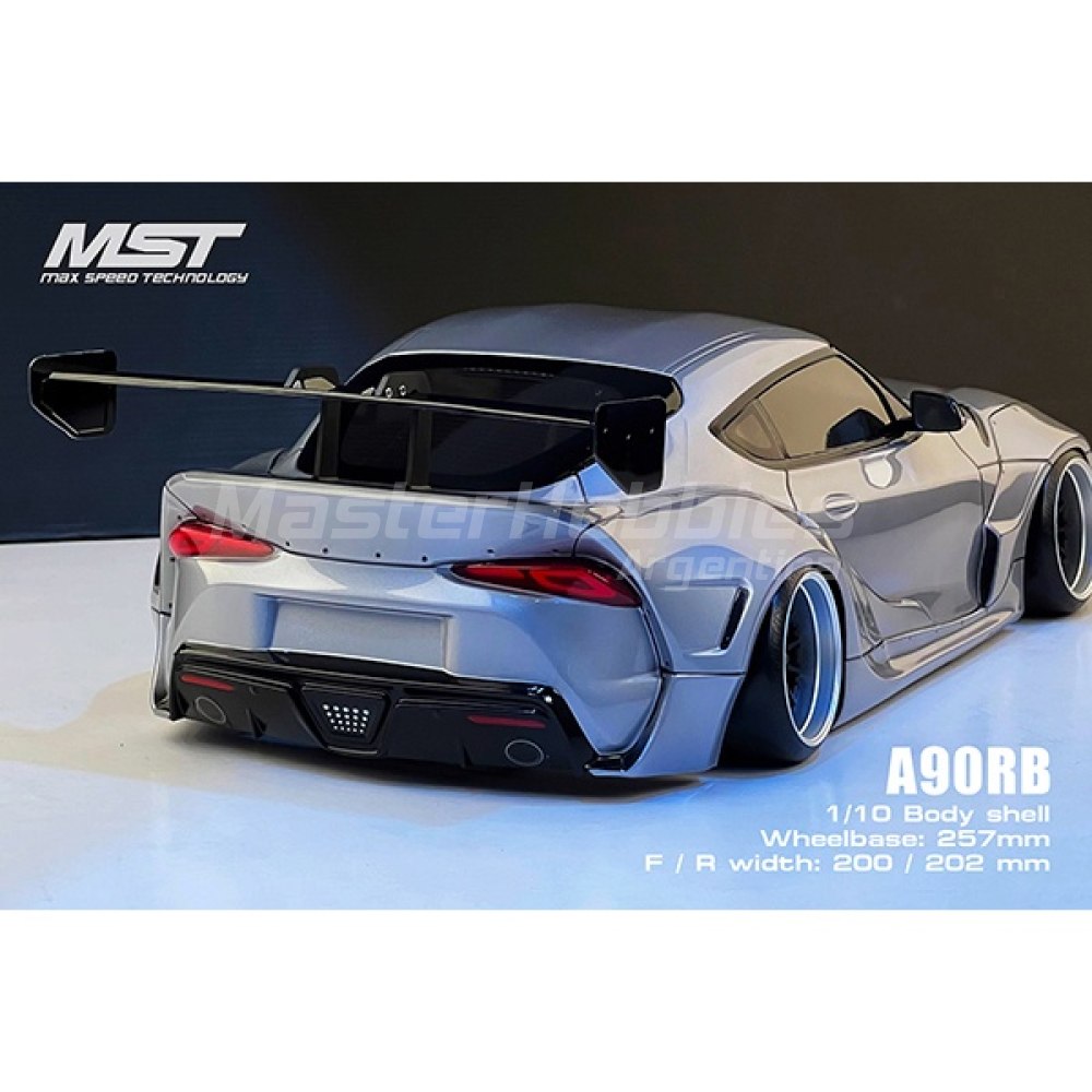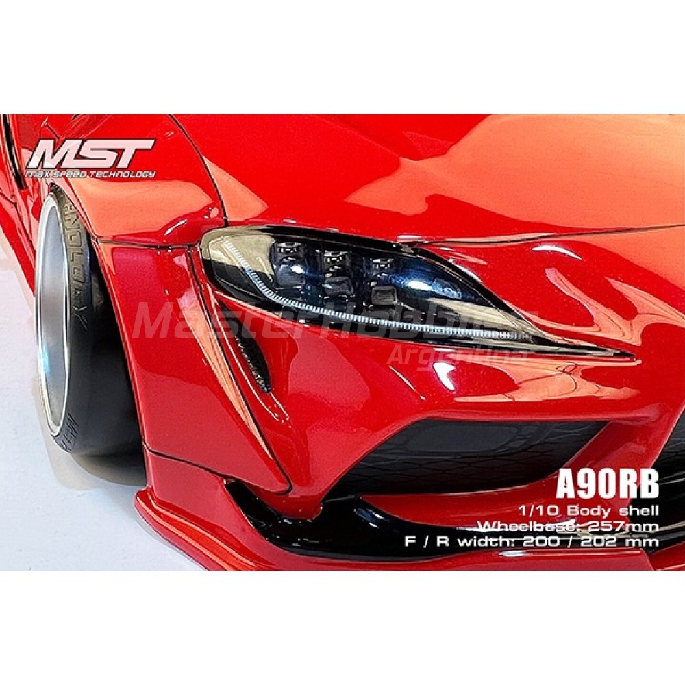 Cuerpo de deriva MST A90RB. Esta carrocería transparente es una gran opción para una carrocería de derrape deportiva que está diseñada para adaptarse a chasis de 190 mm de ancho y 257 mm de distancia entre ejes. El cuerpo está hecho de policarbonato duradero e incluye cubos de luz transparentes, así como piezas de detalles moldeadas. El paquete incluye un juego de carrocería, una hoja de calcomanías y una hoja de máscara de ventana.