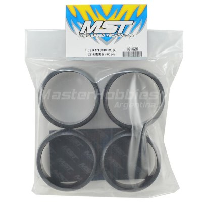 El MST CS-R Drift Tire se recomienda para aplicaciones 4wd y está disponible en una variedad de compuestos para adaptarse a la superficie en la que se está ejecutando. El neumático presenta un borde redondeado, con letras en relieve en la pared lateral que le dan a los neumáticos un aspecto de gran escala. Este es un neumático de 26 mm de ancho, +/- 7° de camber que cuenta con una zona de contacto ligeramente redondeada. Este neumático se recomienda para su uso con ruedas MST. El paquete incluye cuatro llantas.