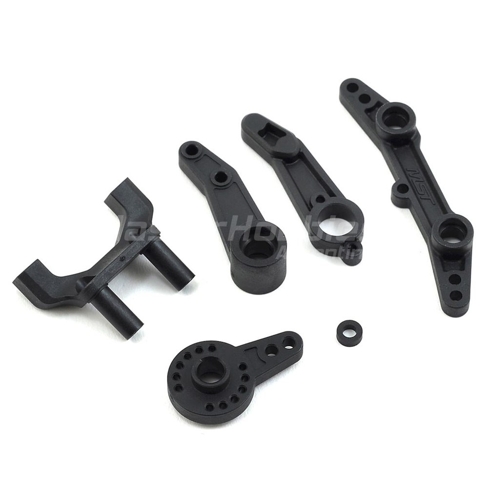 Juego de brazos de dirección MST RMX 2.0 S. Este es el kit de brazo de dirección de repuesto para los modelos RMX 2.0 S. El paquete incluye dos brazos de dirección, soporte de brazo de dirección, placa de dirección y base de montaje.