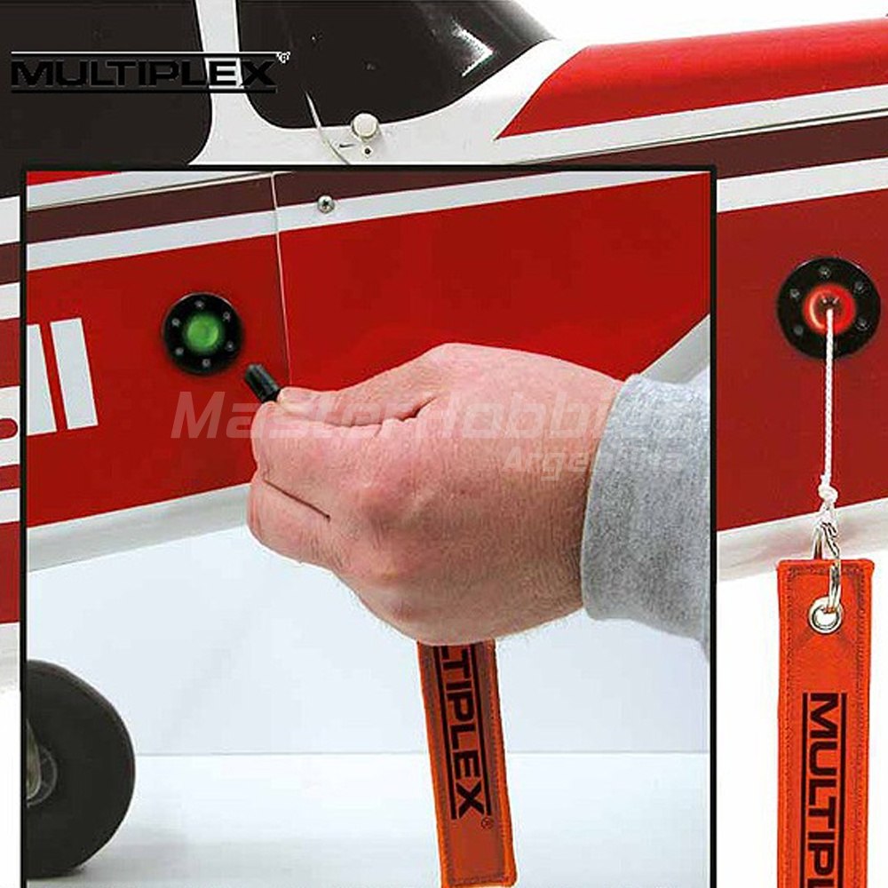 El AntiFlash también se puede combinar con un interruptor de seguridad, que debe montarse en el exterior del modelo en una posición de fácil acceso. Una vez que haya conectado la batería de forma segura y sin chispas, el interruptor se utiliza para armar el sistema de energía. Esto evita que el motor arranque involuntariamente (por ejemplo, al conectar la batería o al transportar el modelo a la zona de despegue).