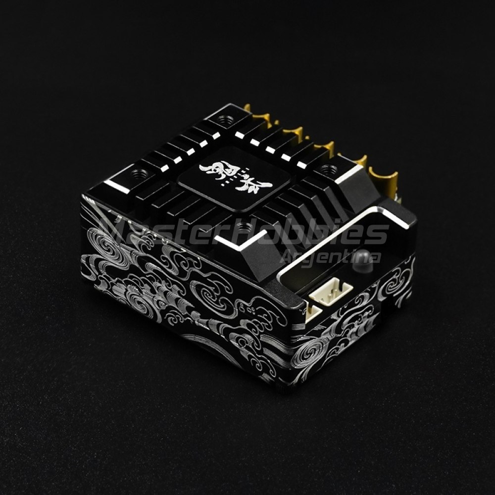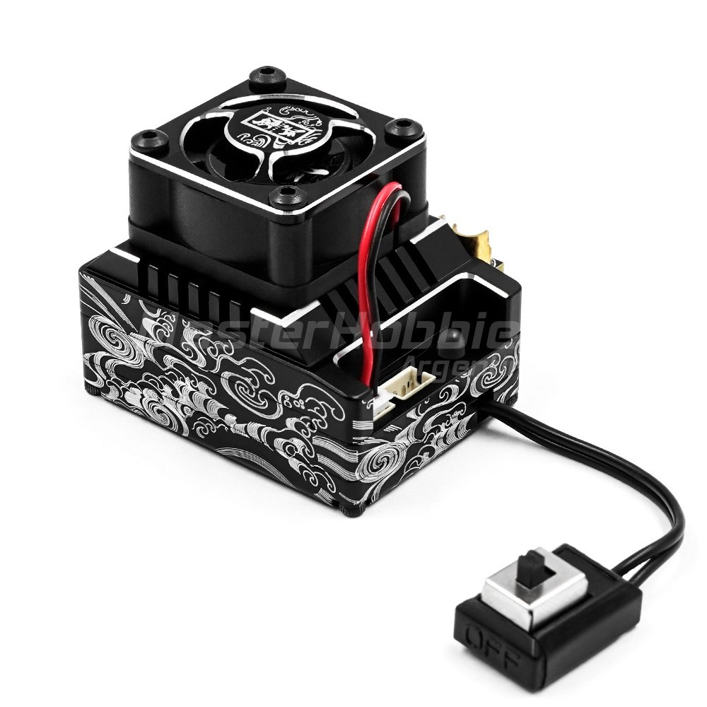 Onisiki Controlador de velocidad electrónico de deriva sin escobillas de 120 amperios. Este ESC es una excelente opción para aplicaciones de deriva RC debido a su suave respuesta del acelerador y sincronización ajustable. El ESC es capaz de 120A para mantener el rendimiento constante durante la carrera. Onisiki le dio a este ESC sus marcas distintivas para combinar mejor con los otros accesorios disponibles. El paquete incluye un ESC, cinco cables ESC, un ventilador, una cubierta de ventilador, un banco de capacitores, un cable receptor y hardware.