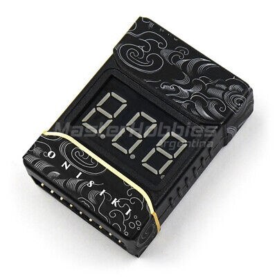 El verificador de monitor de batería LiPo de Onisiki es una opción elegante para verificar los voltajes de las celdas de su batería. Este verificador también funcionará como una alarma de bajo voltaje en caso de que su ESC no esté equipado con una. El paquete incluye un comprobador LiPo.