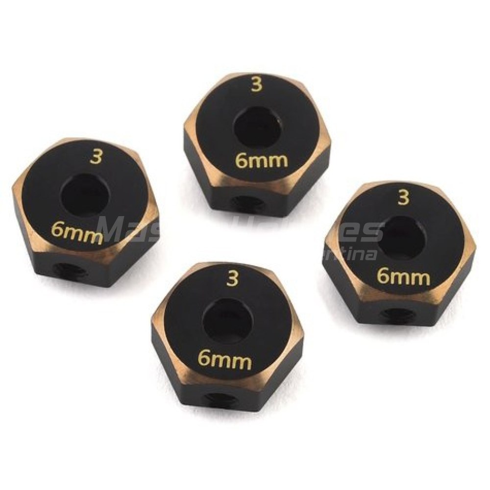 Adaptador hexagonal de latón de 6 mm Samix SCX10 III. Estos adaptadores hexagonales de latón ofrecen 21 gramos de peso no suspendido adicional a sus ejes (10,5 g delante/10,5 g detrás). Son fáciles de instalar utilizando el hardware original y ayudarán a aumentar la estabilidad general del modelo. Han sido maquinados con material de latón de alta calidad y cuentan con un acabado negro sigiloso con bordes dorados biselados para agregar una apariencia personalizada a su equipo. El paquete incluye cuatro adaptadores.