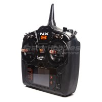 Con 250 modelos de memoria, plantillas de programación de modelos, alertas de voz programables, funcionalidad de sistema de entrenamiento inalámbrico y más, el NX8 pone una amplia gama de innovaciones y ventajas de control en la palma de su mano. Vuele su avión con un rendimiento de próxima generación: elija el transmisor NX8 de 8 canales de Spektrum™.