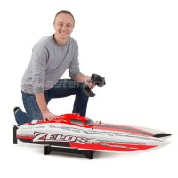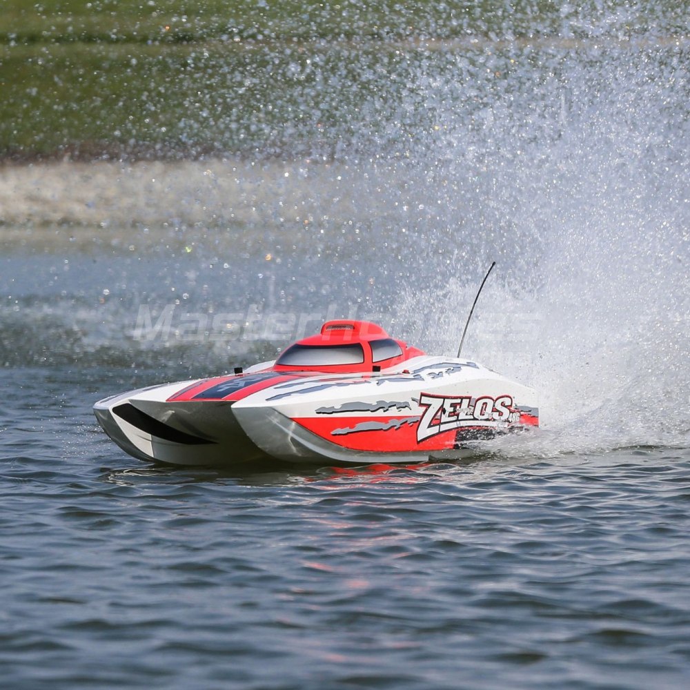Corre como nunca antes con el catamarán Zelos ™ 48 Type G. Este catamarán de alta velocidad está equipado con un motor de gasolina Dynamite® Zenoah G300PUM de 30 cc refrigerado por agua capaz de alcanzar más de 50 millas por hora. En el momento en que la competencia sabe qué los golpeó; se comerán tu velatorio.
